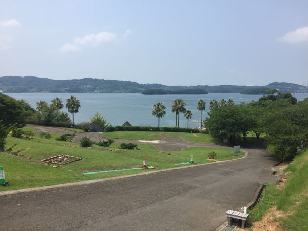 四本堂公園は、大村湾を望む丘に広がる公園です。春の桜をはじめ、アジサイやコスモスなど四季折々の花々が彩ります。