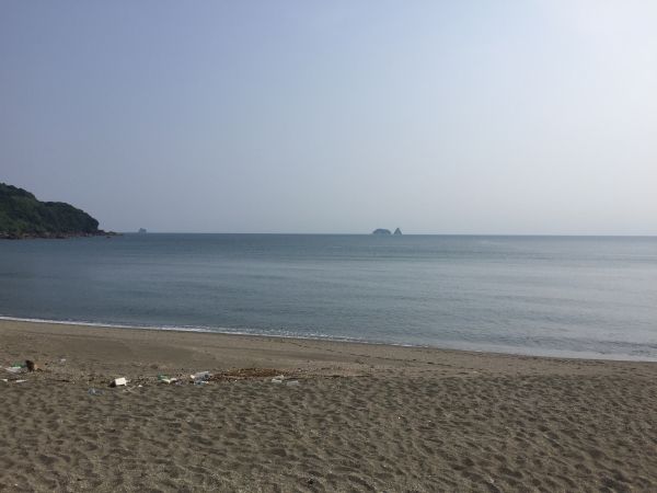 約400メートルの砂浜に青い海と松林が美しく映える雪浦海浜公園は、夕日の絶景スポットとしても知られています。