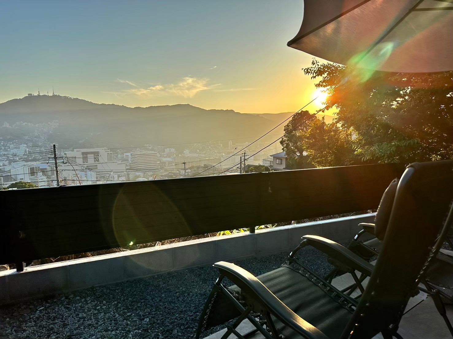 サウナ施設は見晴らしの良い高台にあるため、日中には目の前に広がる長崎の街や山々の絶景、夕方から夜には世界新三大夜景に選ばれた長崎の夜景をお楽しみ頂けます。サウナで温まった身体をクールダウンしながら、女神大橋、稲佐山、長崎港を望む大パノラマをご体感下さい。